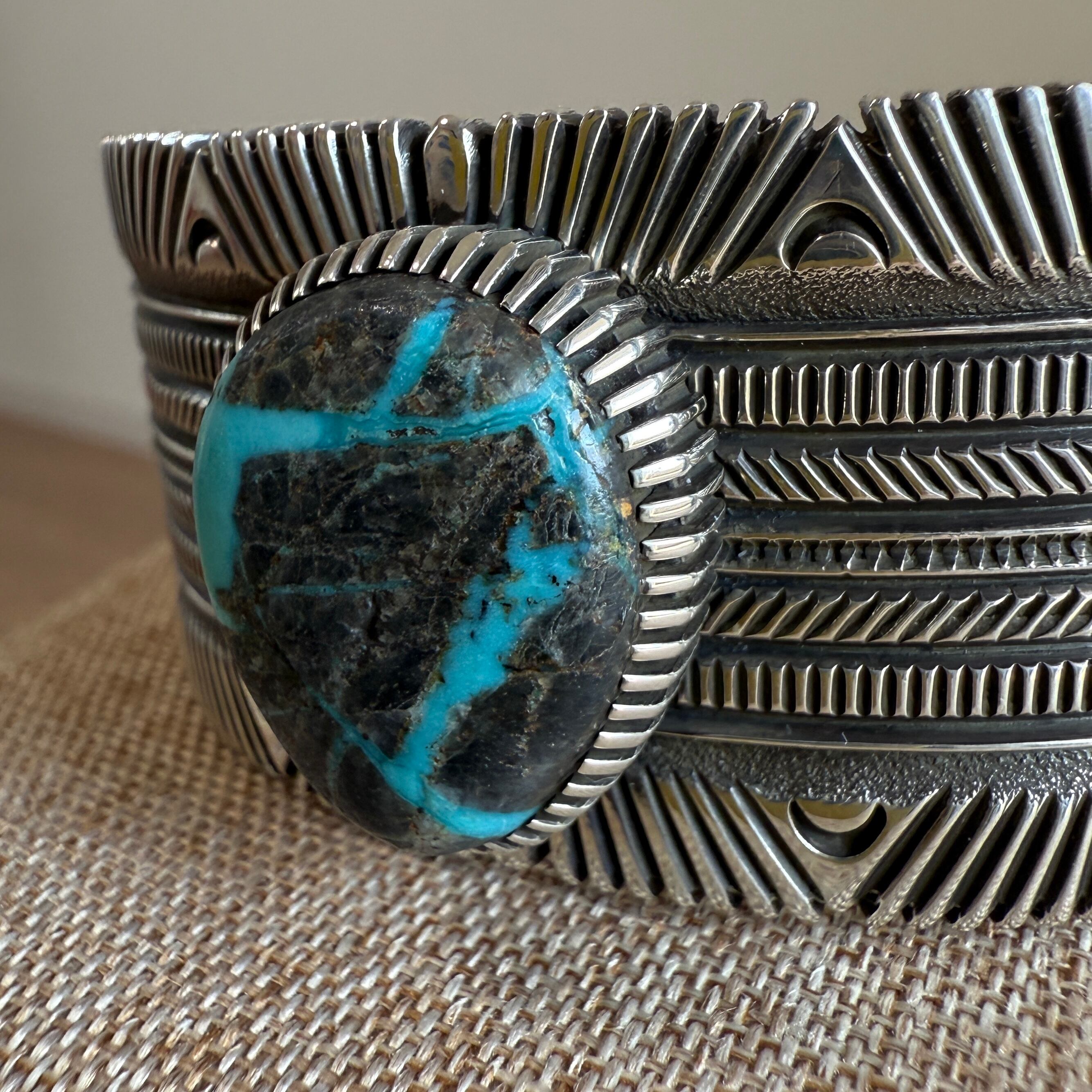 トップにはヴィンテージ感のある80年代のインディアンマウンテンターコイズを